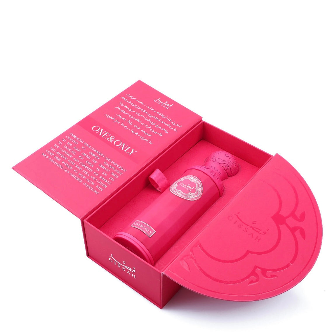 One & Only by Gissah has a floral fruity creation opens with juicy notes of bergamot, passion fruit and peach offering a bright and playful start. The heart is a delicate swirl of peach, geranium flower and a soft seductive touch of caramel. In the base, the richness of patchouli, rare Madagascar ambergris and sensual white musk creates a lasting impression of confidence and sophistication.